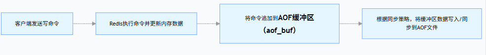 Redis 会根据配置的AOF 同步策略 ,将 AOF 缓冲区中的数据写入(write)到 AOF 文件的内核缓冲区,再同步(fsync)到磁盘。