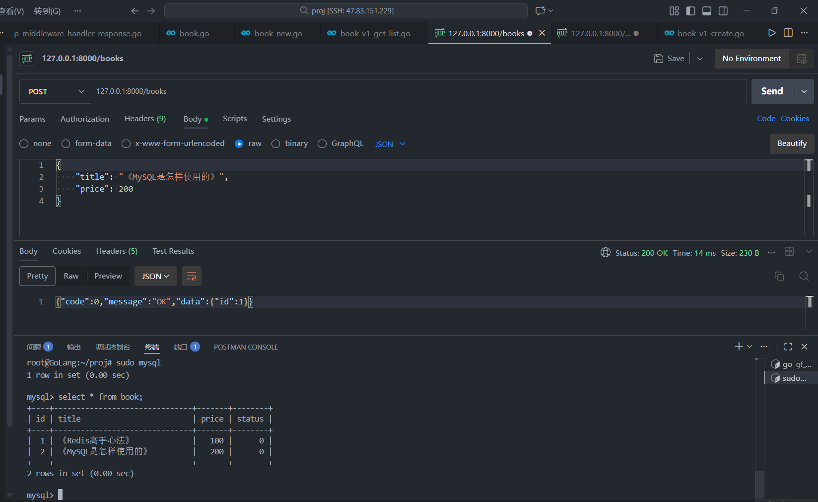 6.1.1、在 main.go 文件 import 导入 MySQL 驱动) - `6.1.2、在项目根目录下执行下面的命令`