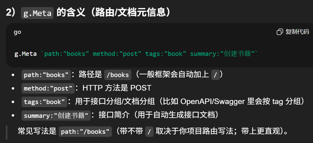 // 请求方法和路径是根据 请求结构体里的 g.Meta 标签自动生成的