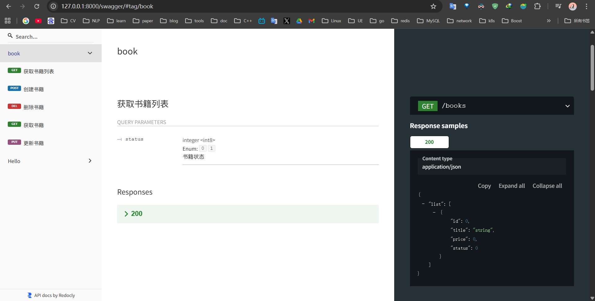 | :8000 | POST | /books | gf_demo/internal/controller/book.(*ControllerV1).Create | ghttp.MiddlewareHandlerResponse |