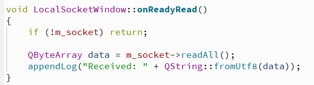 connect(m_socket, &QLocalSocket::readyRead, this, &LocalSocketWindow::onReadyRead);