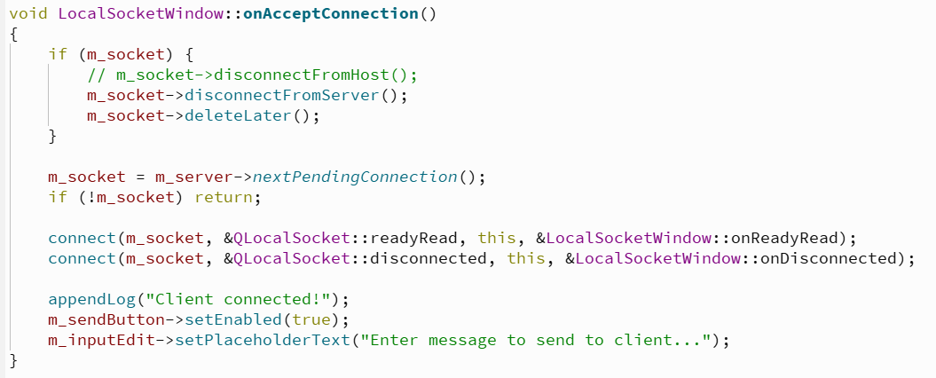 connect(m_server, &QLocalServer::newConnection, this, &LocalSocketWindow::onAcceptConnection);