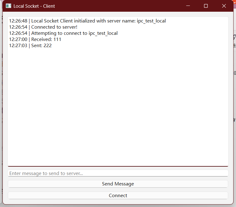 和之前一样,我们为QLocalSocket方式设计单独的测试窗口: