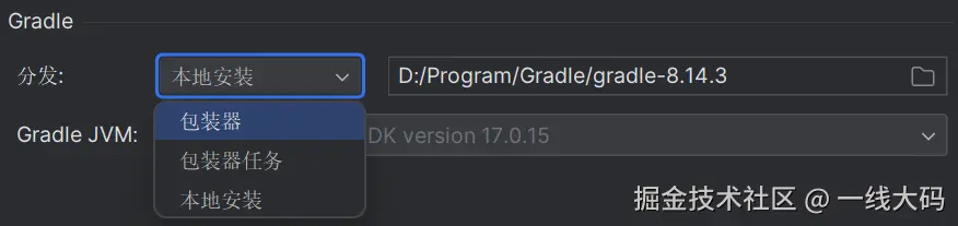 这里的 包装器 指的就是使用gradle-wrapper.properties指定的gradle来构建项目。