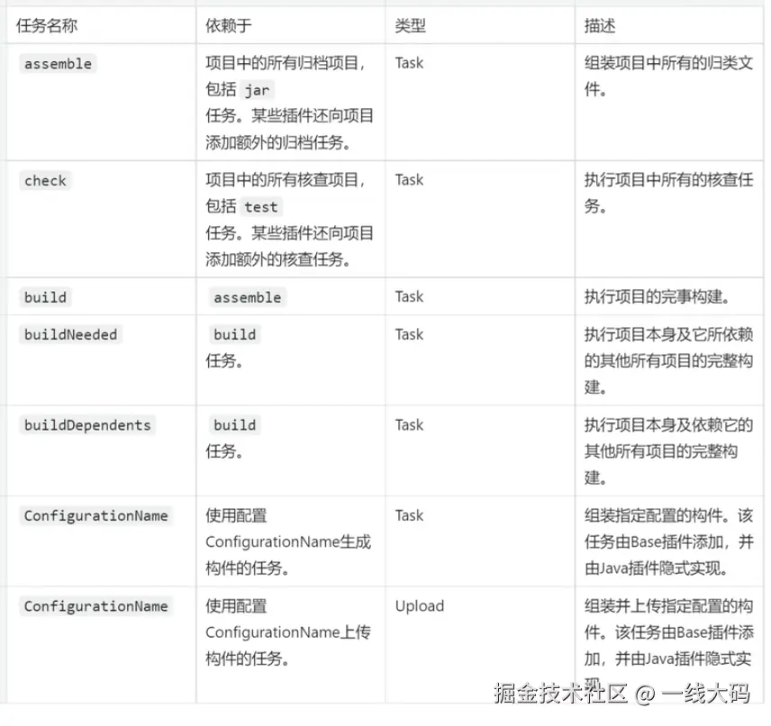 Java项目(使用了Java插件)执行gradle build后,会默认执行下列任务: