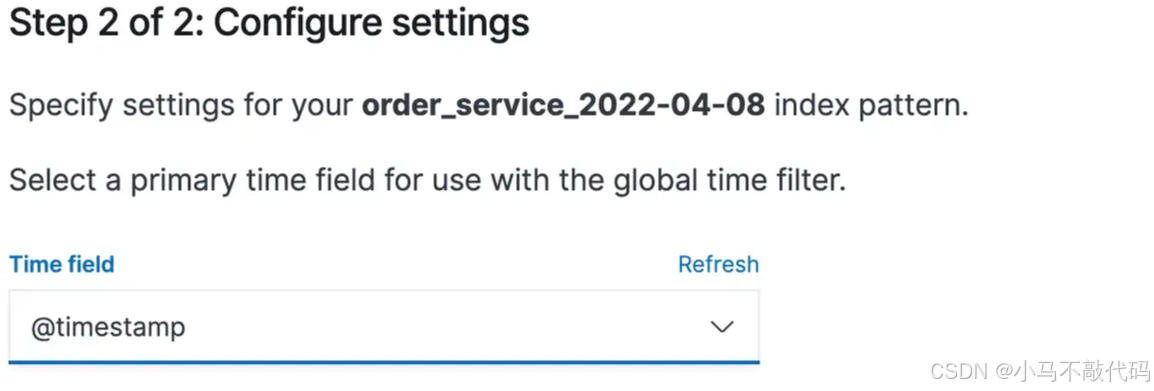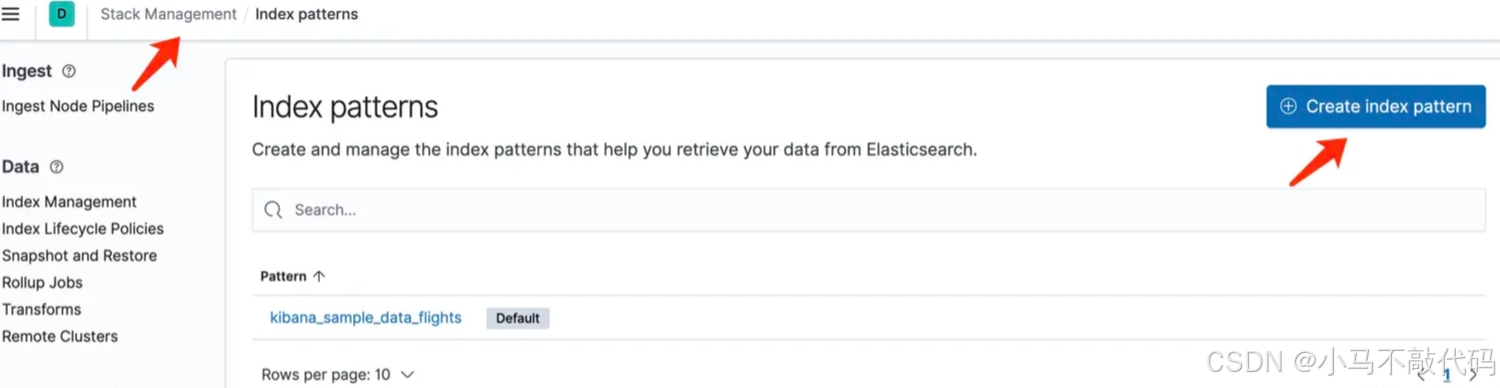 此时我们可以在 Kibana 把这个索引加入到 Index patterns,然后再在 Discover 中进行日志查询。点击 Kibana 左边菜单栏最下面的 Stack Management,然后再点击最左边的 Kibana 下的 Index patterns,出现下面的界面: