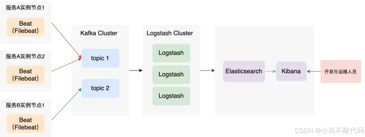 下面将介绍几种常见的 ELK 架构,并且讨论其优缺点和适合的使用场景。