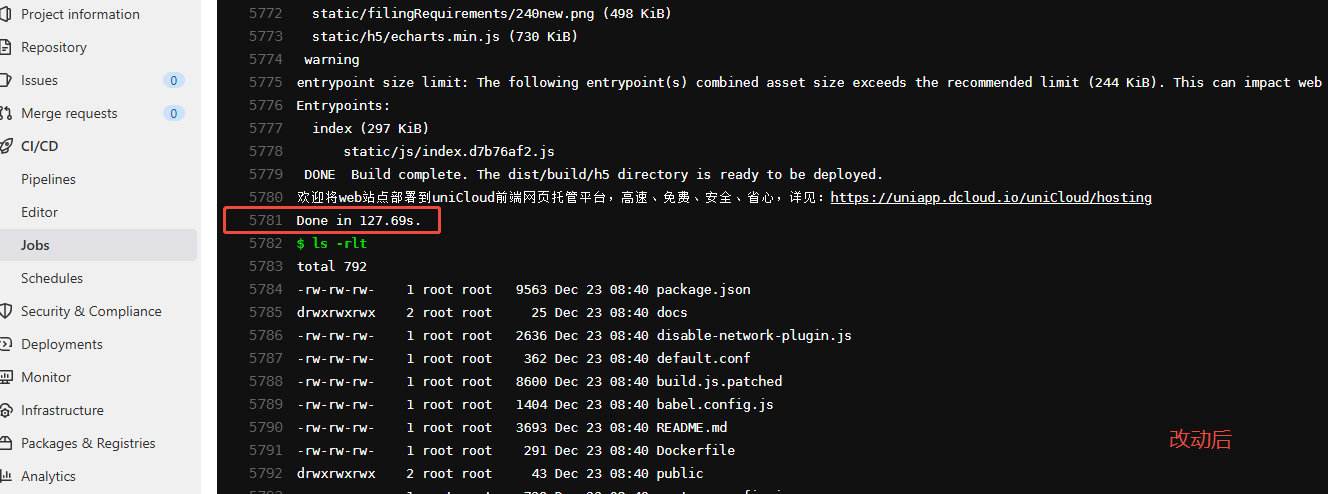 uni-app 2.0.x。通过 ci/cd内网devops 容器内 运行 npm run build:h5:prod构建时。有以下提示: