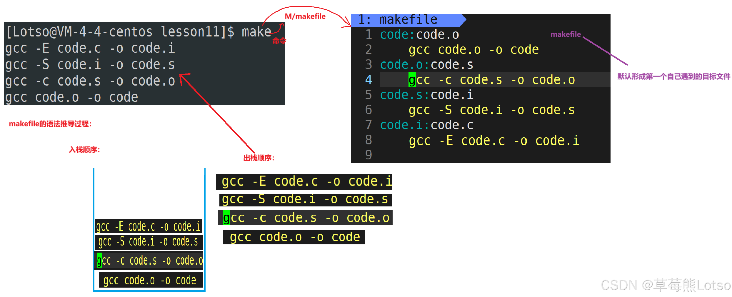 参考图示 :(Makefile 会自动推导目标文件的依赖)