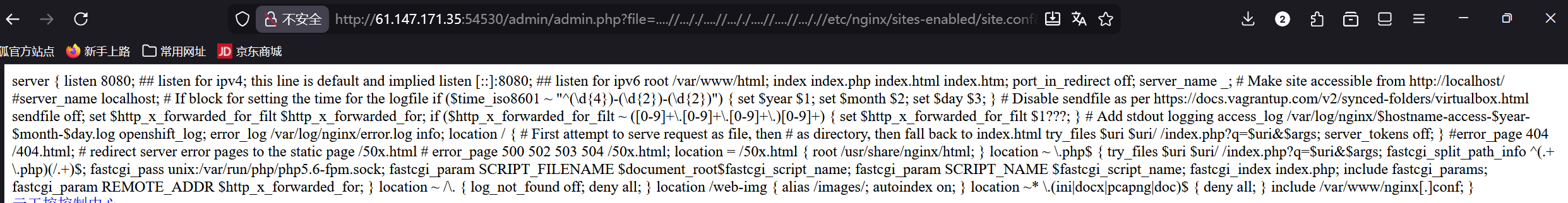 访问先前在hint.php中提示我们的配置文件目录