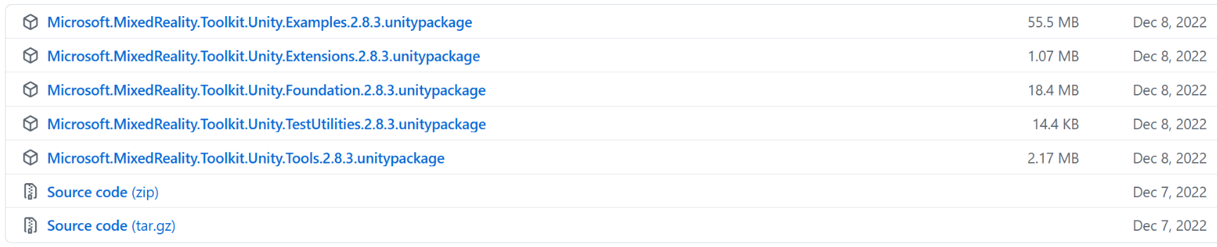 MRTK官方下载地址:https://github.com/microsoft/MixedRealityToolkit-Unity/releases/tag/v2.8.3