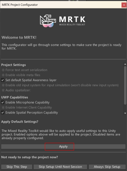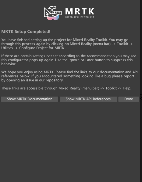 10.点击Apply,应用后,配置器会自动结束流程,关闭窗口即可回到 Unity 场景