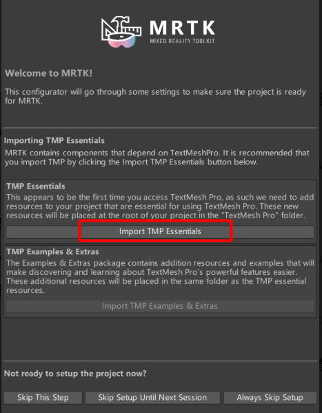 最后导入Example(示例包)Microsoft.MixedReality.Toolkit.Unity.Examples.2.8.3.unitypackage 是示例场景 / 脚本,用于验证功能