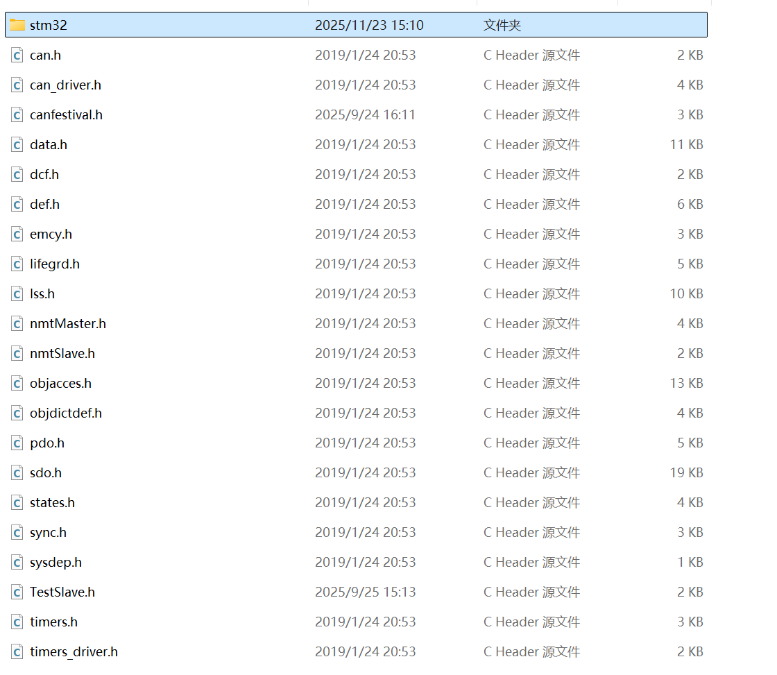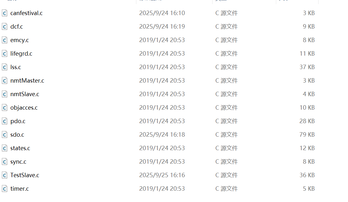 其中的四个函数分别为:初始化定时器为CanFestival提供时间基准,用于心跳、同步等时间相关功能。发送CAN消息。动态更改CAN总线波特率。初始化CAN控制器。然后添加对应的.c文件来实现该接口。