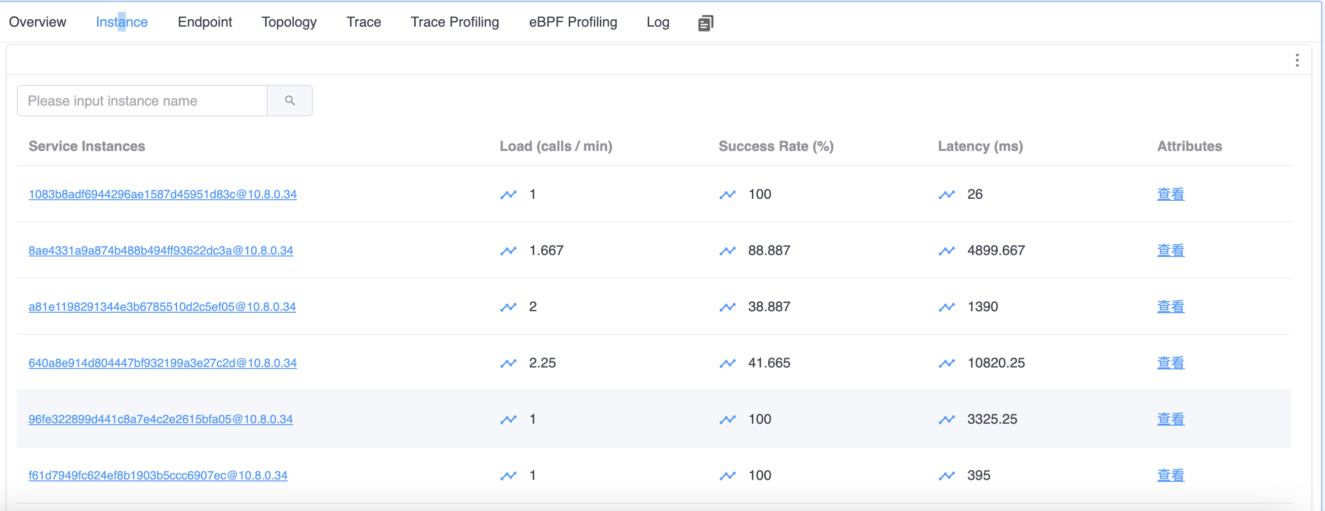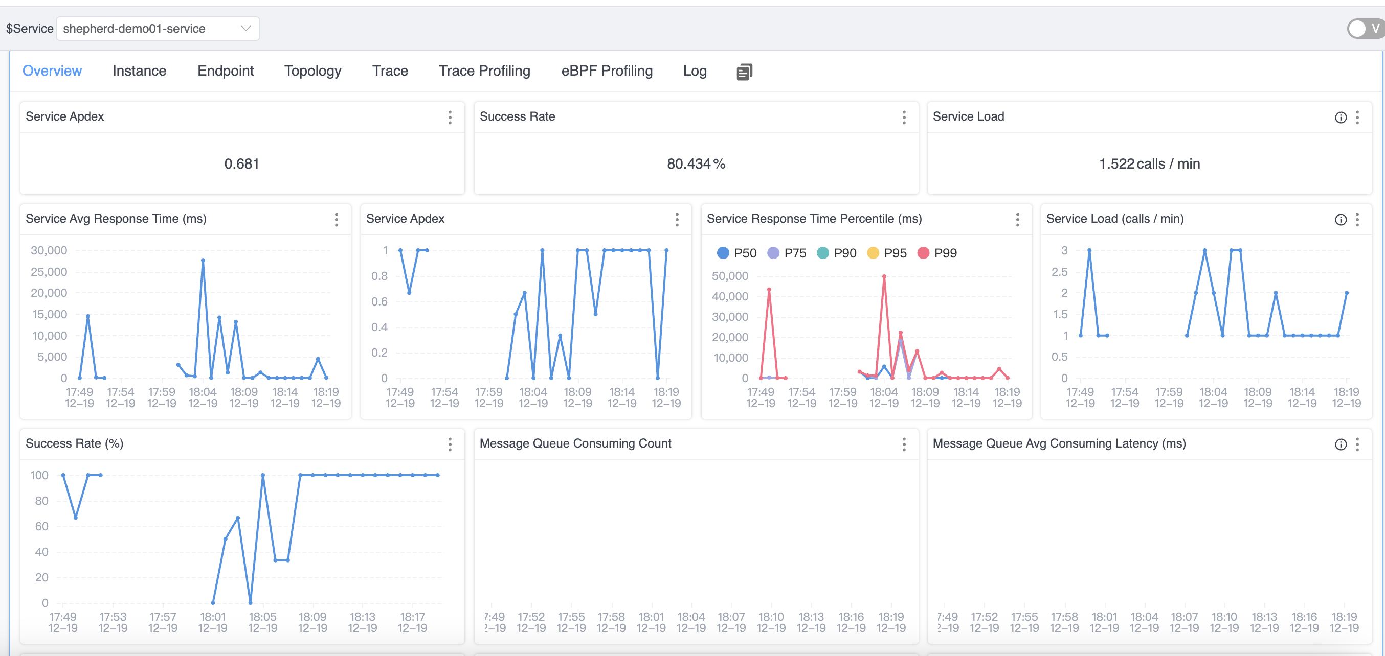 - 服务概览:展示服务负载量、接口请求平均响应时间、成功率等关键指标