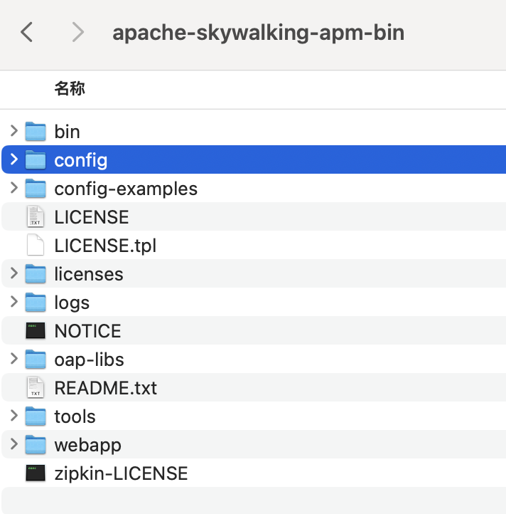 **config:**存放配置文件,这里是我们需要关注的,有OAP服务的配置文件