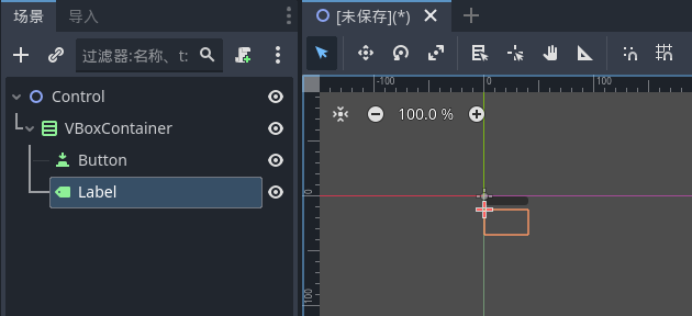UIRoot.tscn,Root 选Control,添加VBoxContainer、Button、Label,观察 Inspector 中尺寸和锚点的变化。