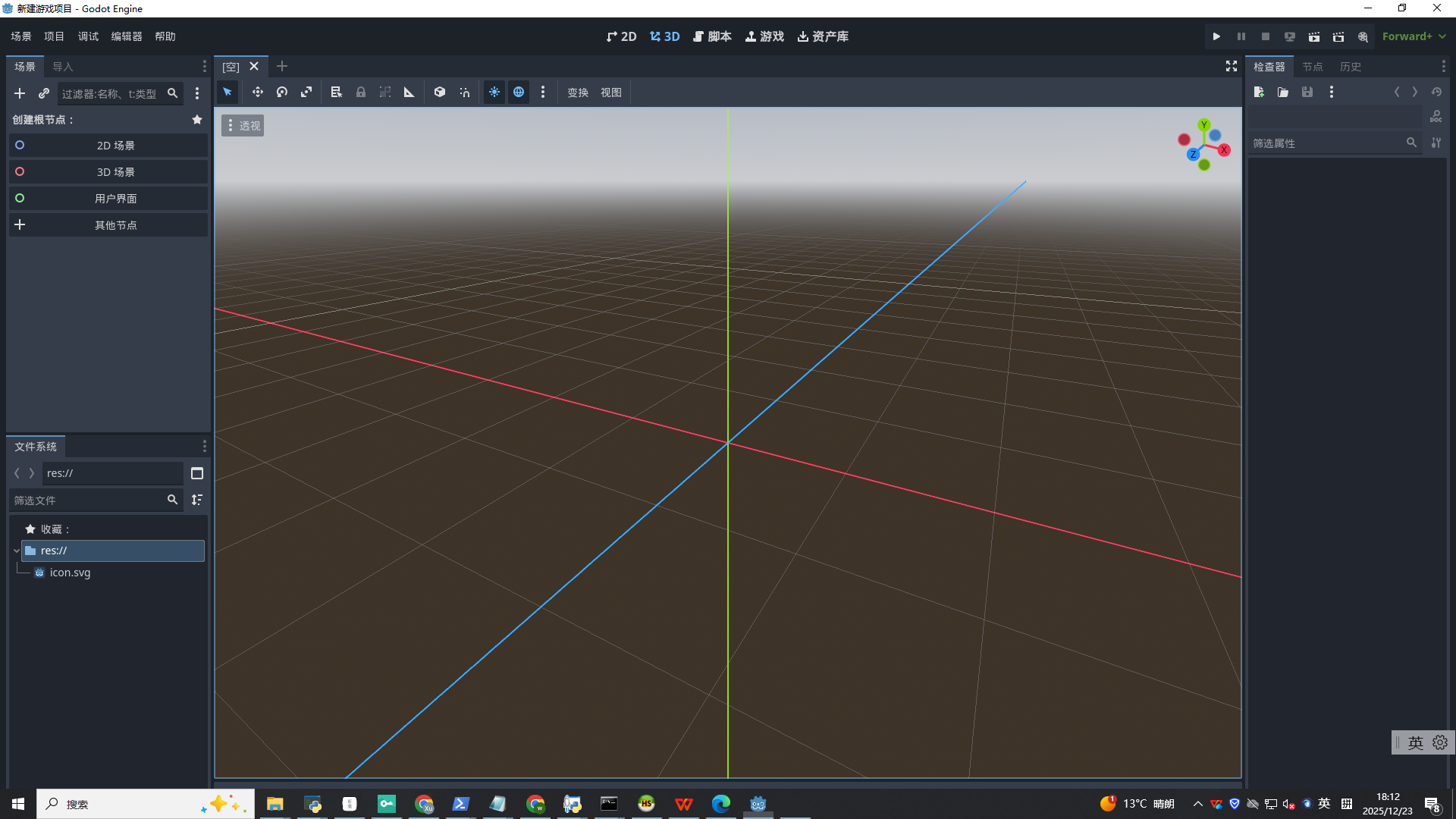 - 左侧:场景树 (Scene) 与 文件系统 (FileSystem):一个管节点,一个管资源。