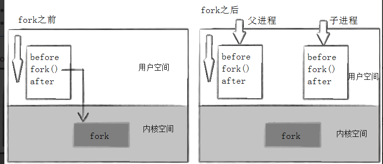 After:pid is 43676(父进程pid), fork return 43677//fork的返回值