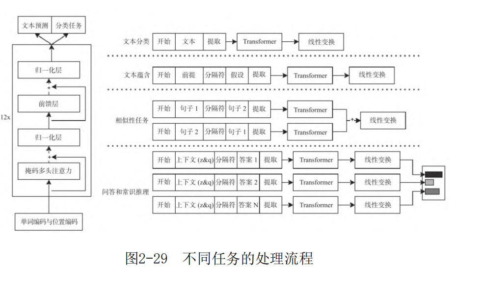 特定任务的输入转换。对于一些文本分类任务,可以直接按以上所