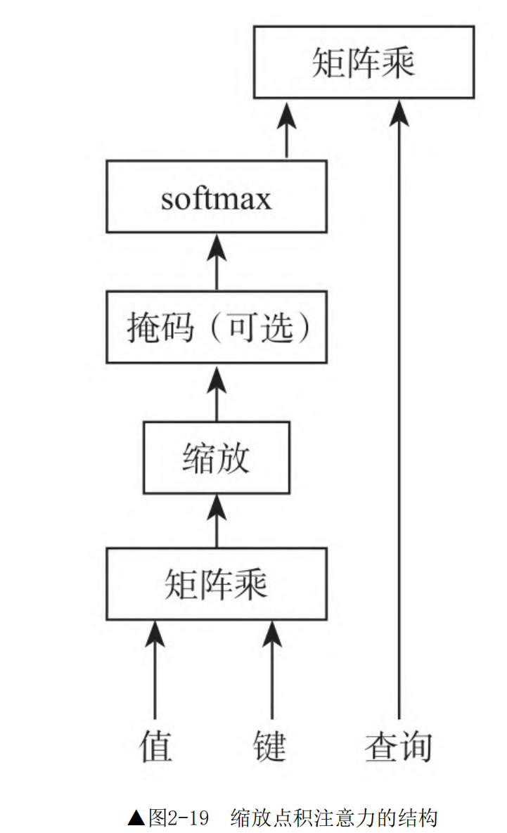 缩放点积注意力的结构,这是多头注意力的核心组成部分。