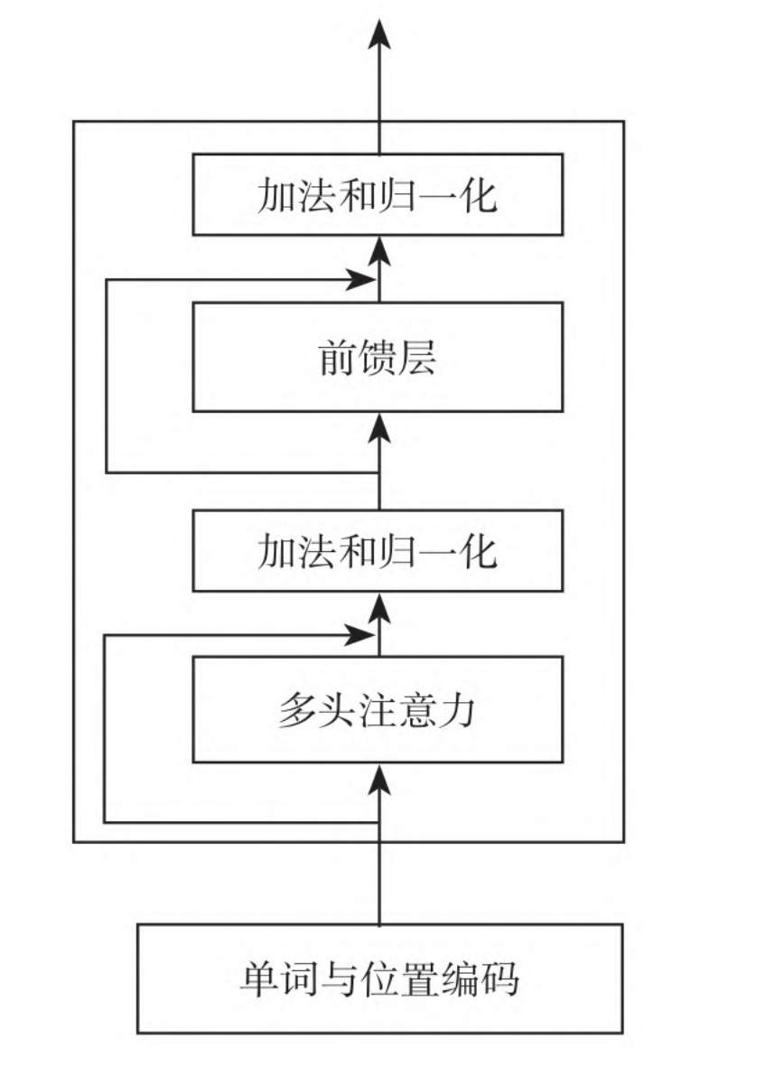 编码器由多头注意力、加法和归一化、前馈层组成