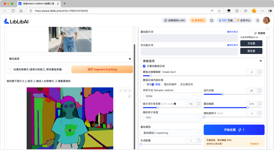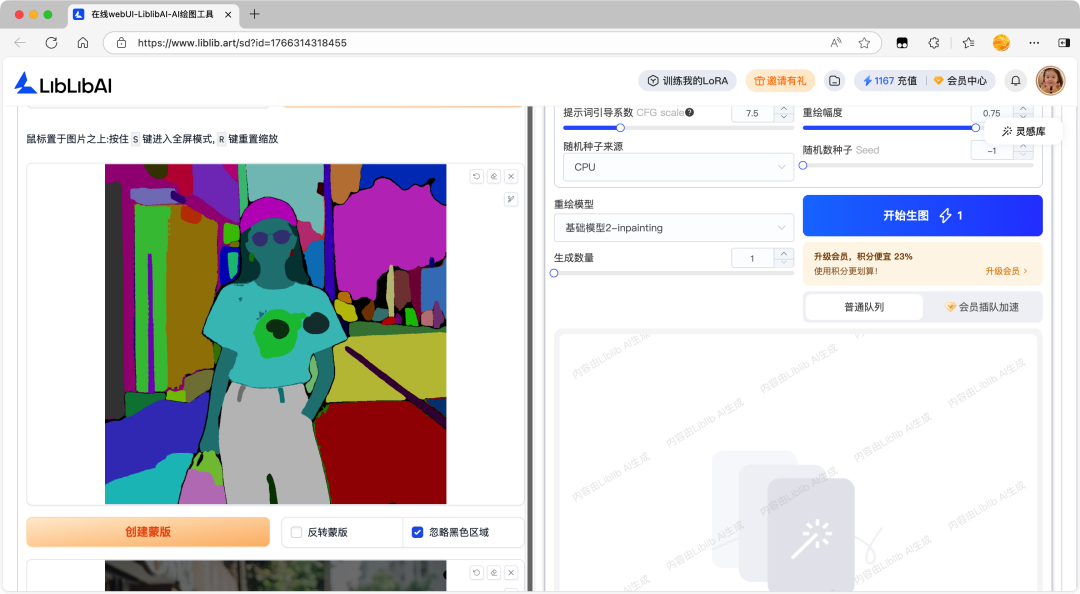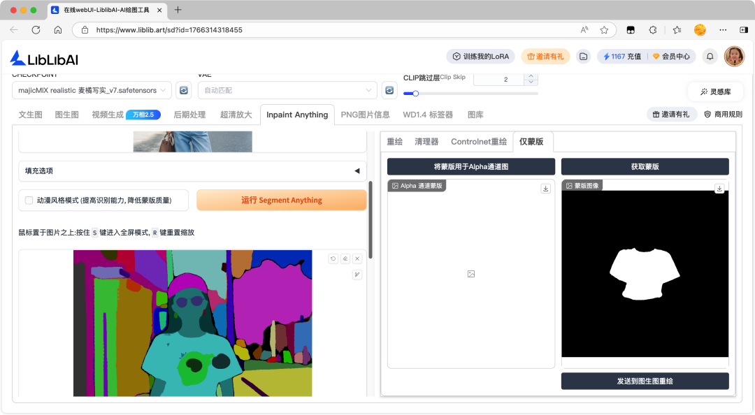 本地部署的 Stable Diffusion 需要自行安装 Inpaint Anything 插件,LiblibAI 已内置该插件。