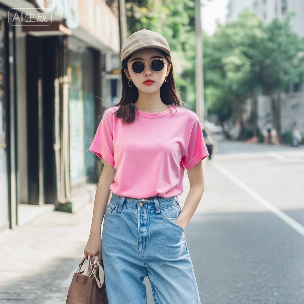 - 正向提示词(英文):Loose pink short-sleeved T-shirt,