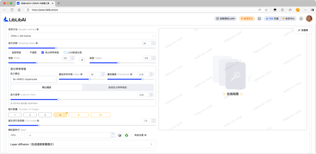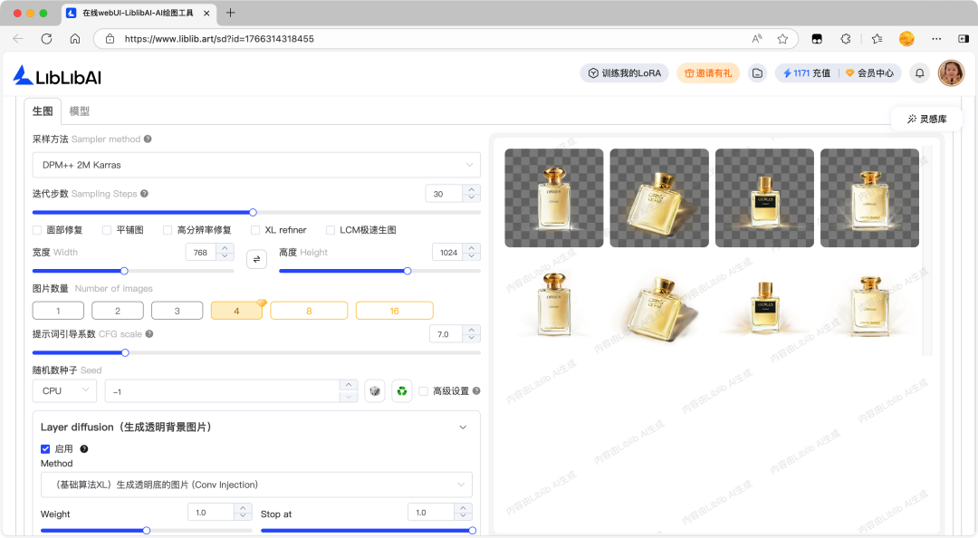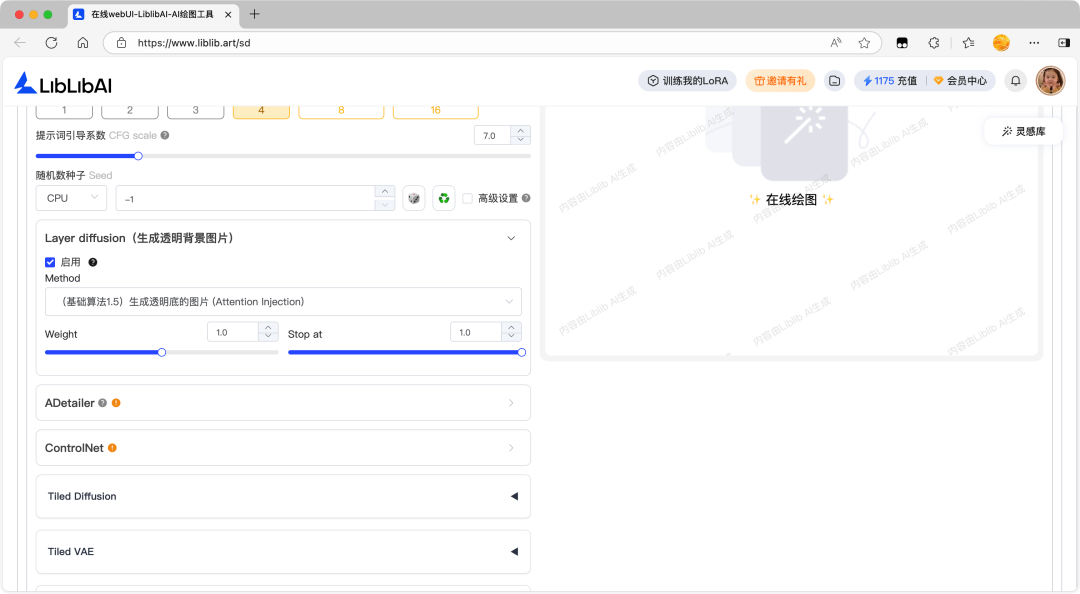 本地部署的 Stable Diffusion 需要自行安装 Layer diffusion 插件,LiblibAI 已内置该插件。