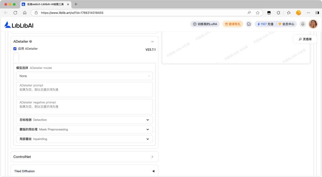 本地部署的 Stable Diffusion 需要自行安装 ADetailer 插件,LiblibAI 已内置该插件。