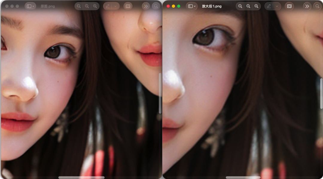 - SwinIR 4x:细节还原细腻,保留纹理自然度(如皮肤、布料等),适合人像、写实摄影、高精度插画等高清放大,但生成速度较慢,对模糊图修复力弱。