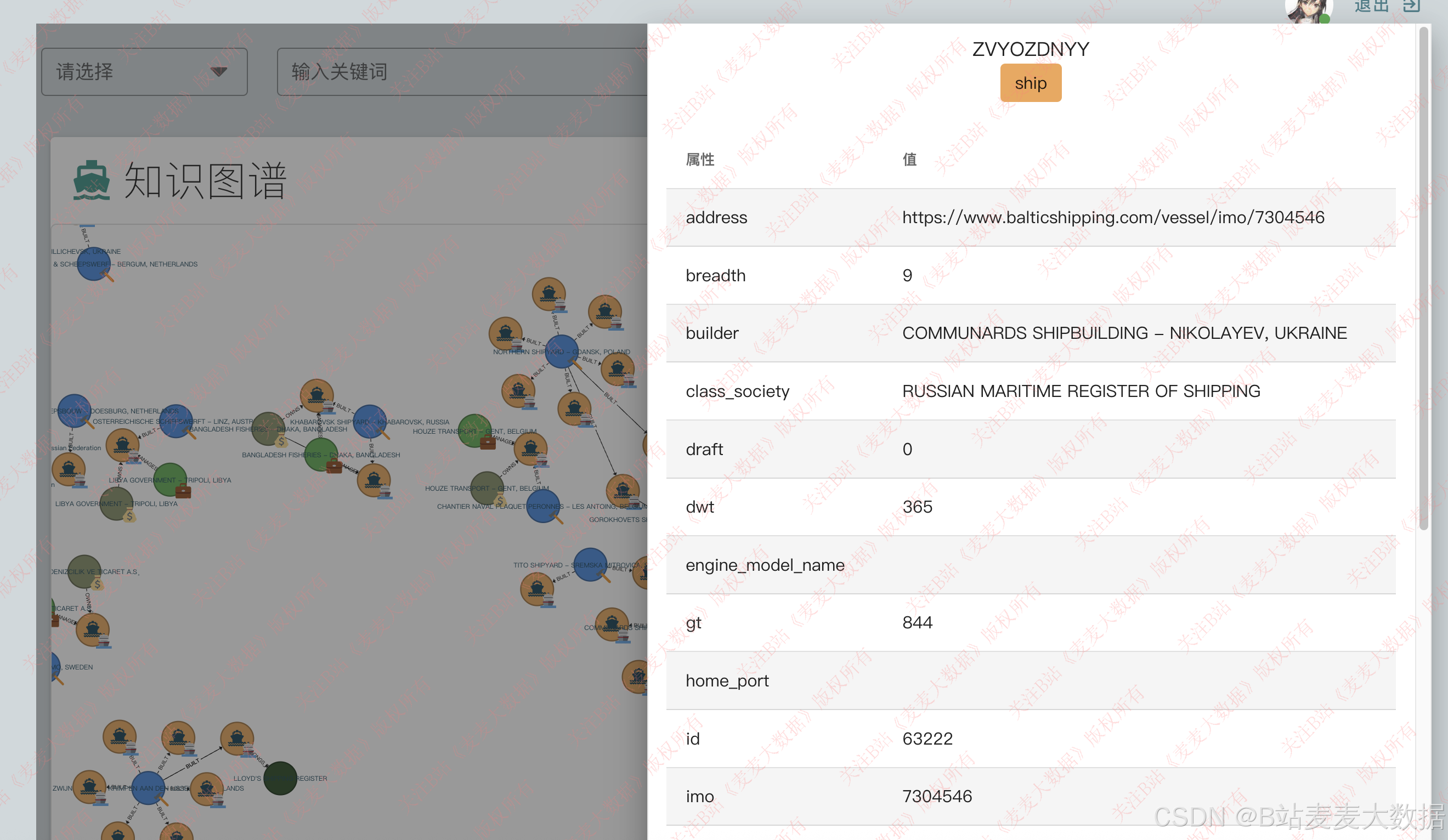 系统通过爬取船舶行业数据(如船舶登记信息、船型参数、港口数据等)构建领域知识图谱。实体包括:船舶类型、母港、船东、建造年份、载重吨、推进系统、船体结构等,其关系包括:"属于"、"建造于"、"服务于"、"配备有"等,全部录入Neo4j图数据库。