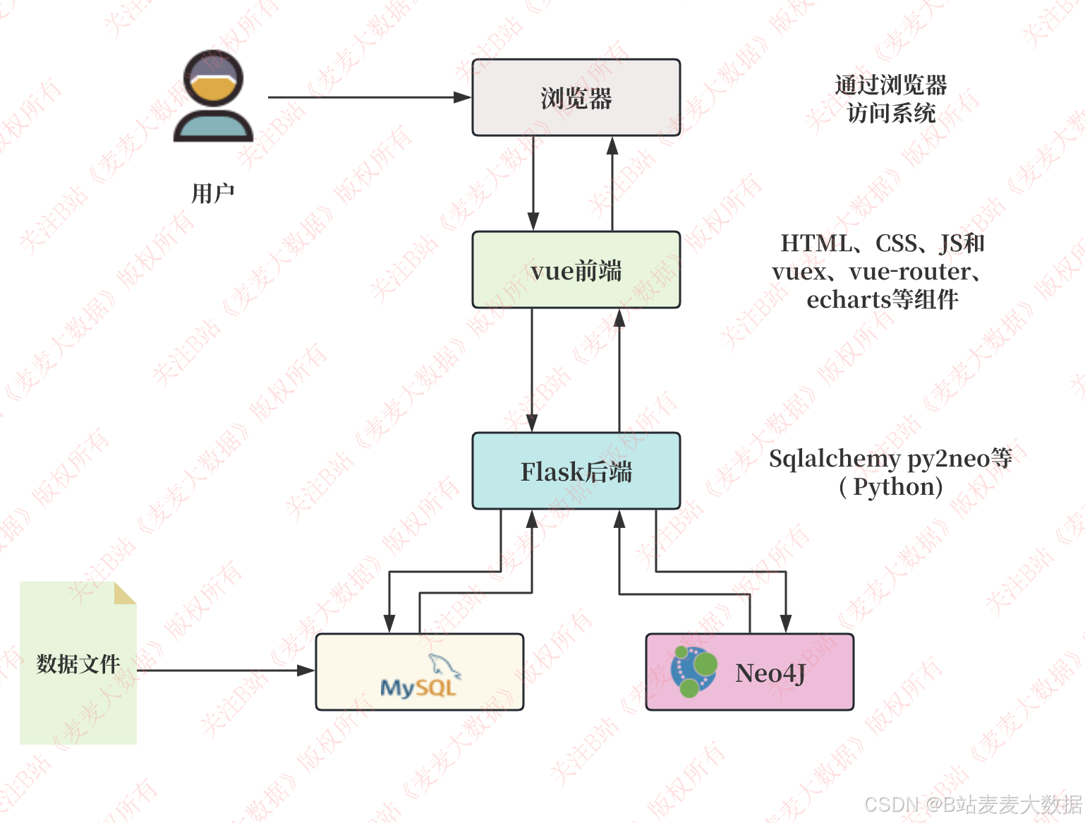 - 前端通过Vue+VUE-Router实现界面跳转,Axios调用Flask接口;