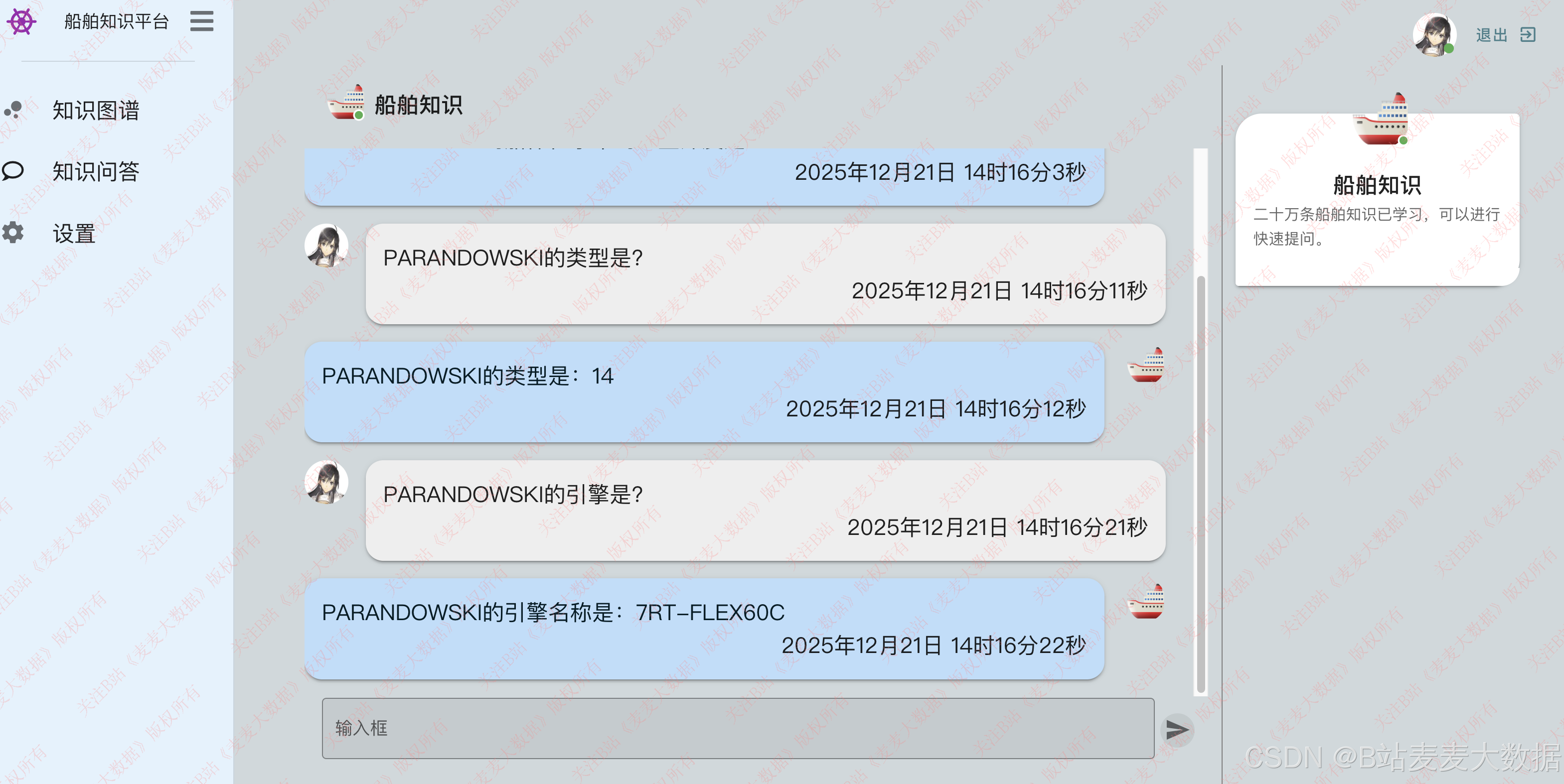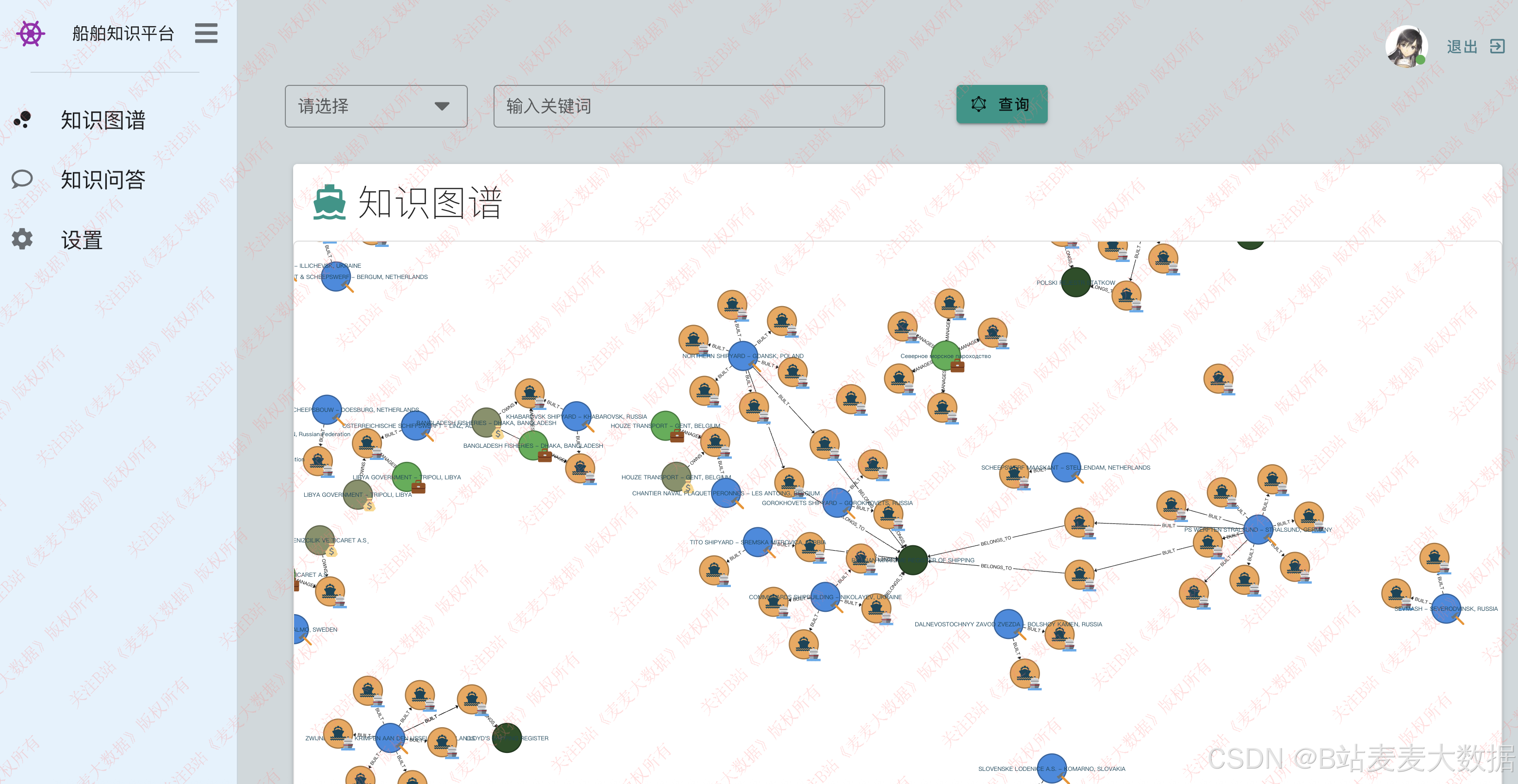 系统简介:本系统是一个基于Vue+Flask+Neo4j构建的船舶知识问答系统。其核心功能围绕船舶知识图谱的构建与智能问答展开。主要功能模块包括:用户登录注册、知识图谱可视化、船舶分类预测、自然语言问答、船舶信息查询、知识图谱管理、用户个人设置等。