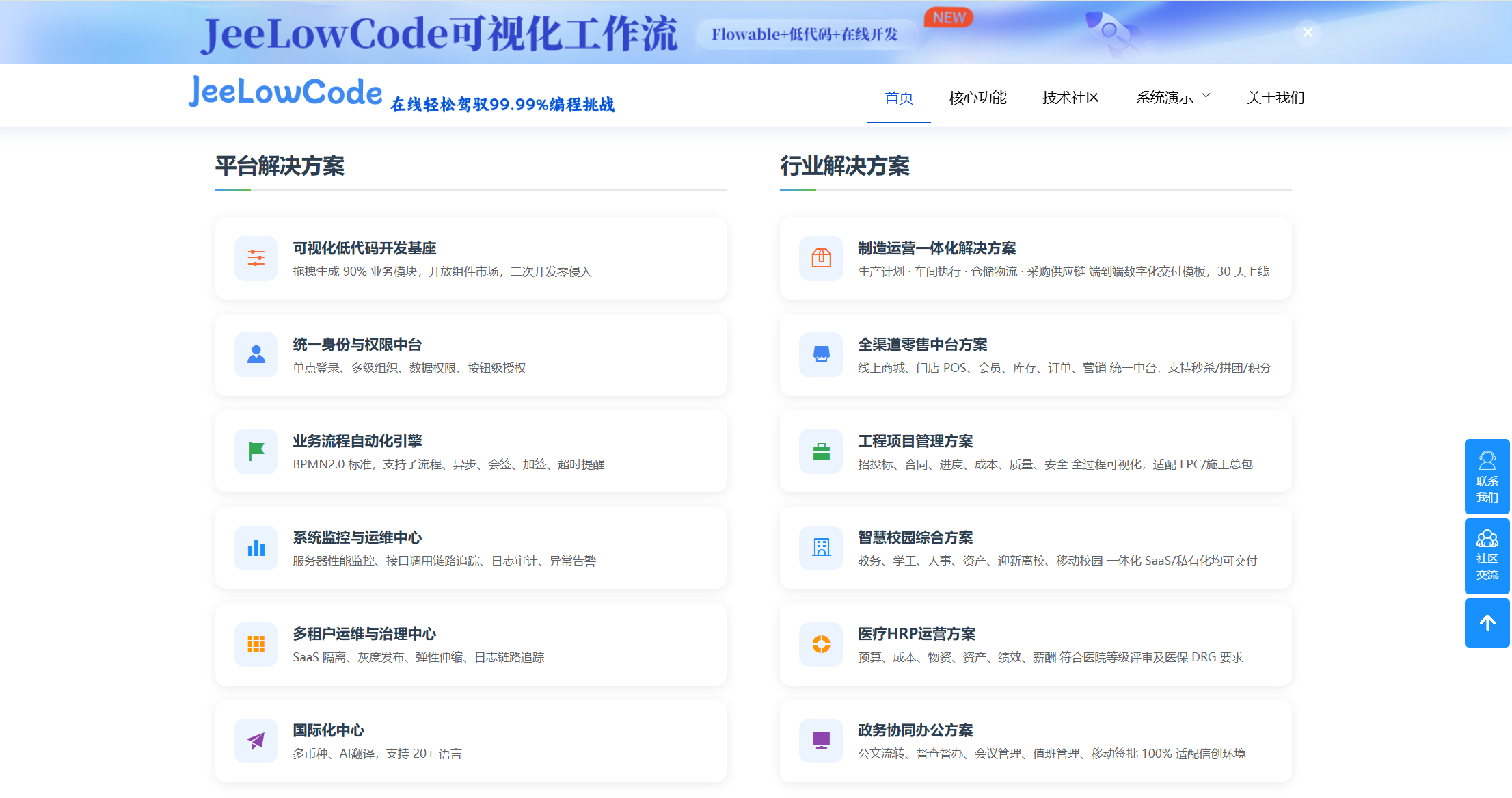 - 前端界面层:大量使用低代码快速构建用户界面和交互逻辑。
