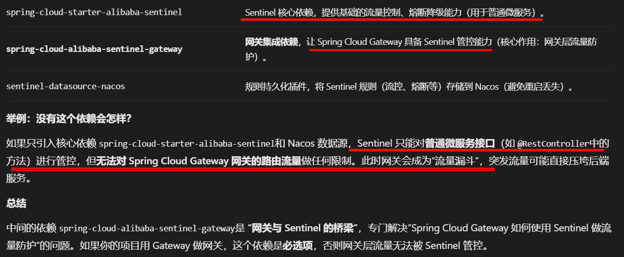 作用是网关层流量防护 举例:没有这个依赖会怎样?