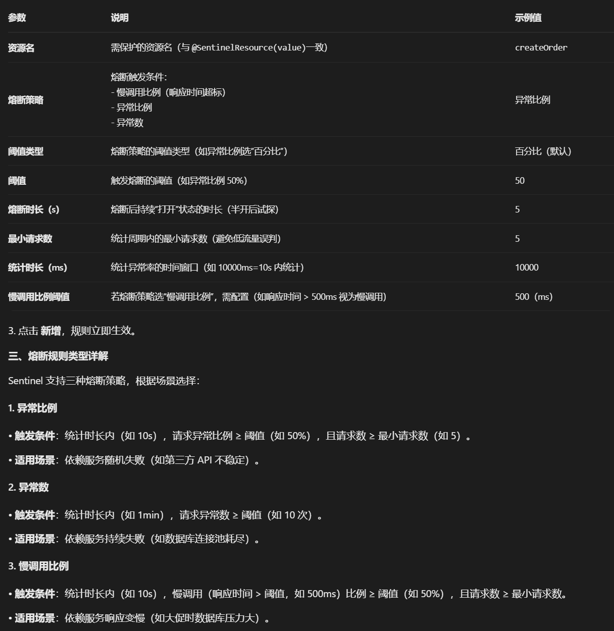 2.左侧菜单选择 熔断规则 → 新增熔断规则 ,配置参数
