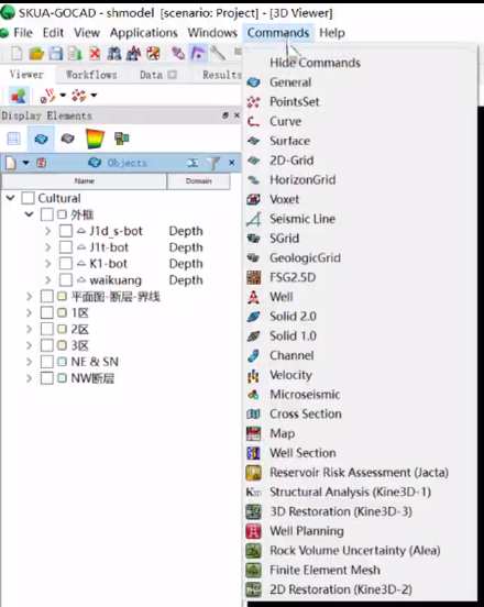 左侧Display Elements窗口控制图元的显隐,下面的状态栏控制图元的颜色、大小、透明度等属性。
