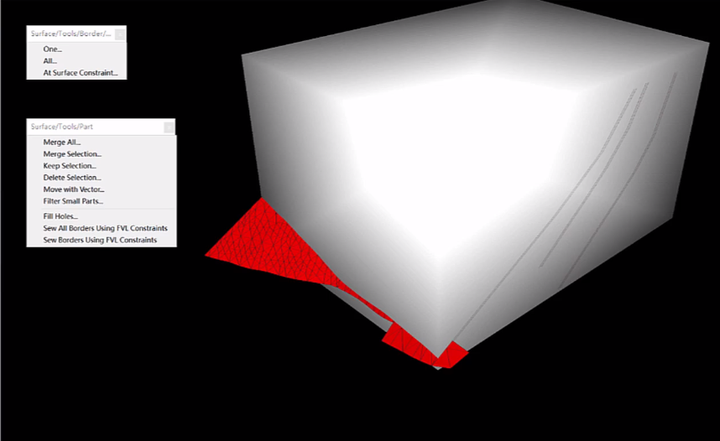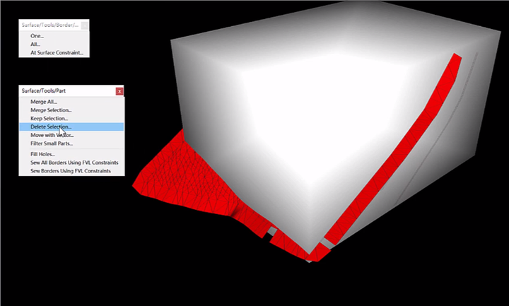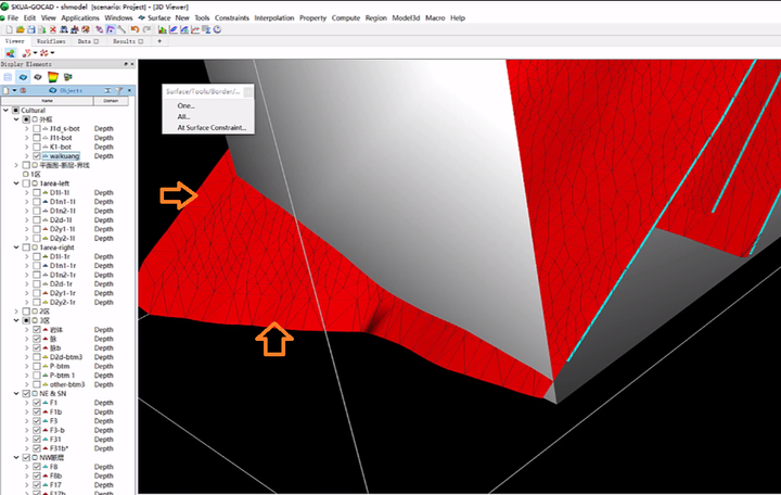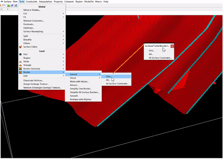 扩展边界,点击Surface的子菜单Tools,选择边界扩展,One指1个边界。点击One上面的横线,可以将小菜单其拉到窗口上,便于操作。