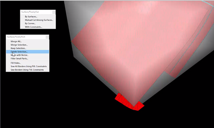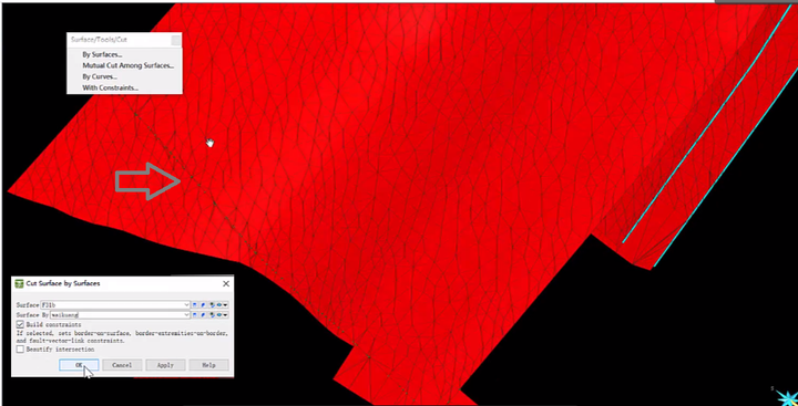 Cut/By Surface 一个面被另一个面切,Mutual Cut Among Surfaces是面互切。