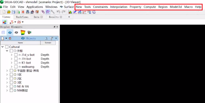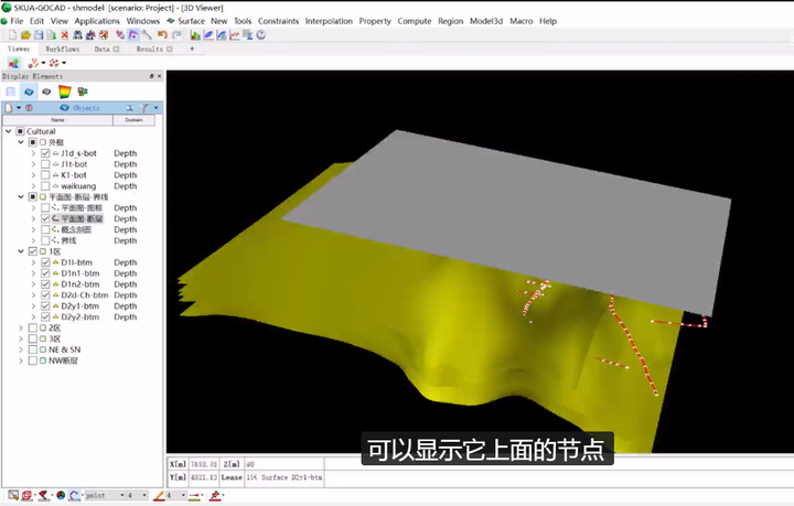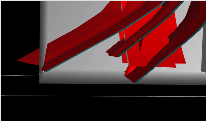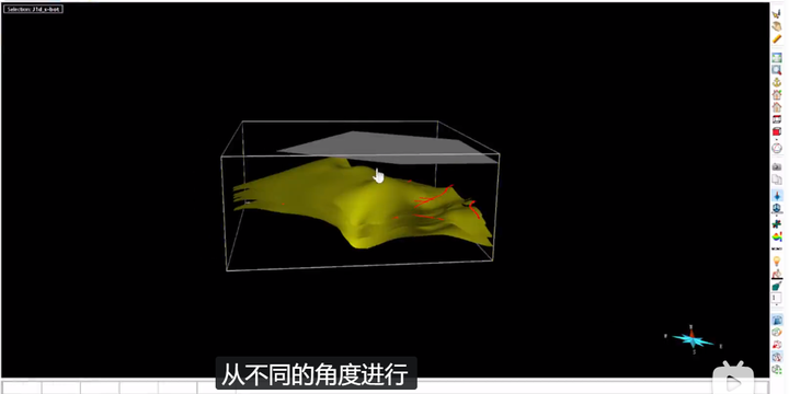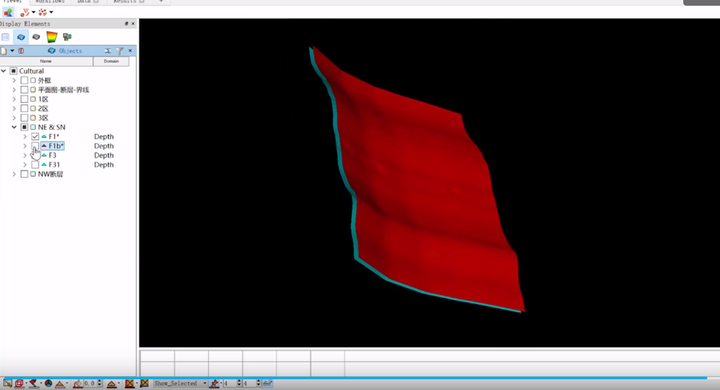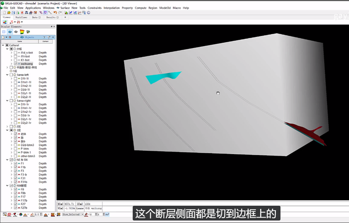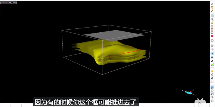 设置范围框的透明度为0,如果断层切到范围框,就会显示断层边界线。