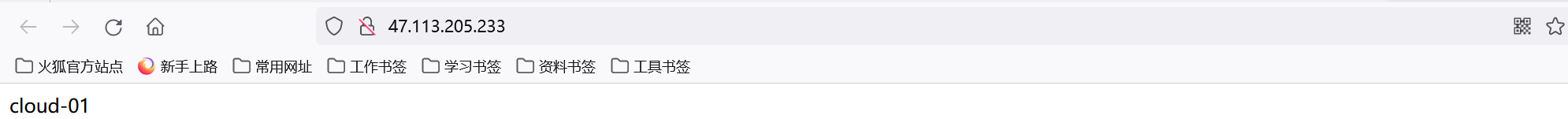 [root@iZf8zbgem0zifx0oeg563tZ html]# echo "cloud-01" >> index.html