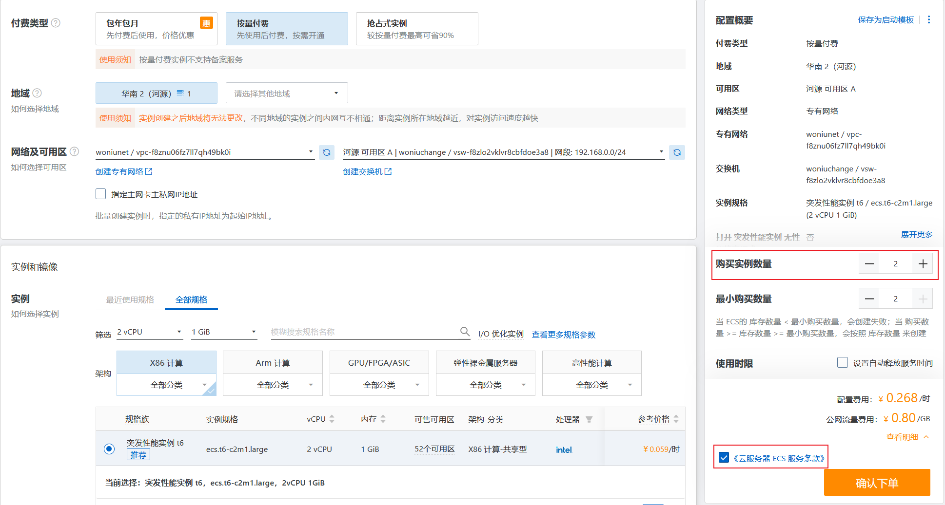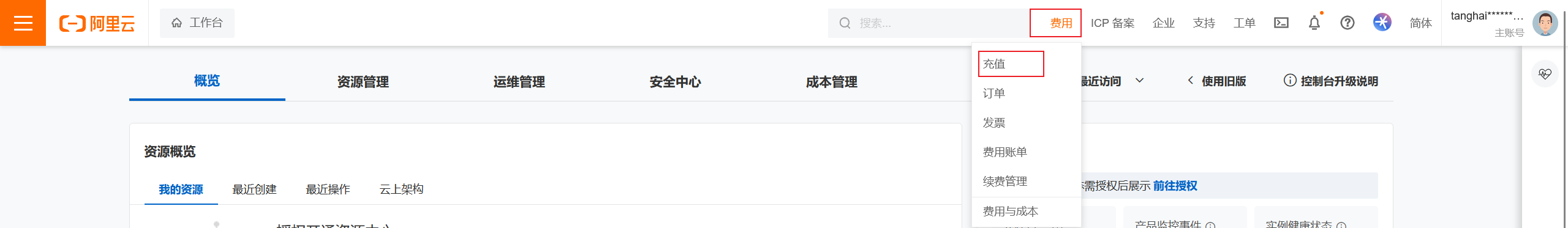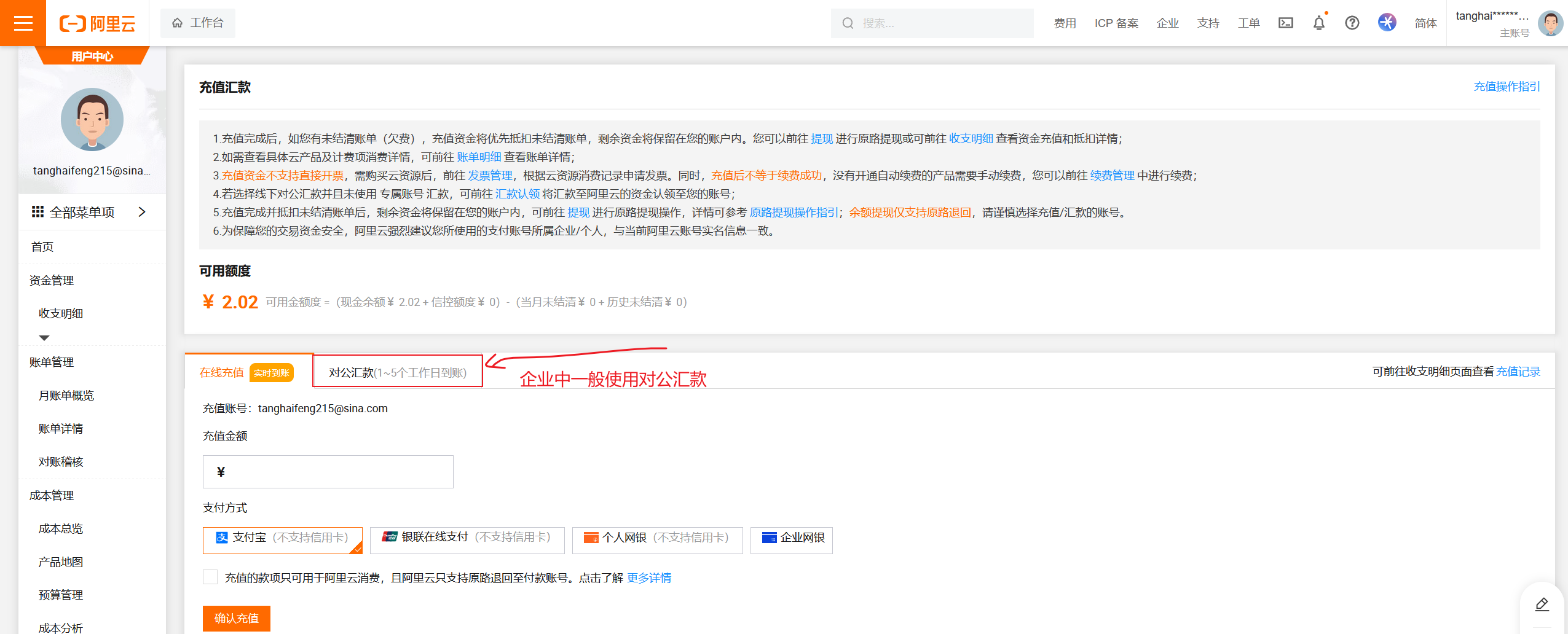 使用公有云,需要进行一定的充值,我们使用按量计费模式,不要使用很多的费用,充值100即可,不需要太多(大约使用1-2块左右,后续没有使用完成的可以提现)