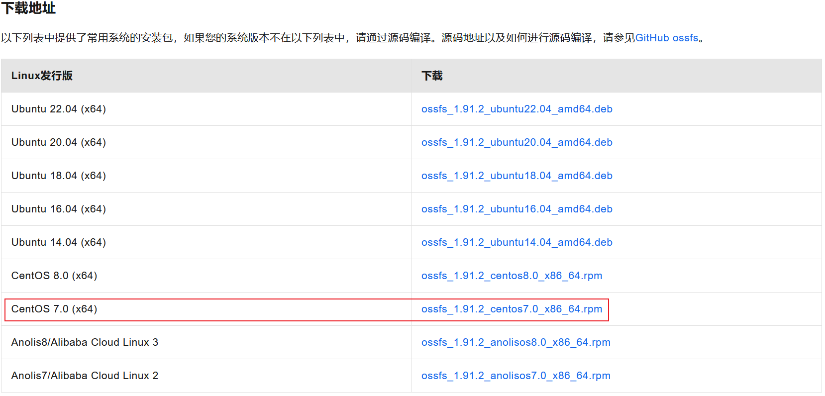 [root@iZf8zbgem0zifx0oeg563sZ ~]# wget https://gosspublic.alicdn.com/ossfs/ossfs_1.91.2_centos7.0_x86_64.rpm