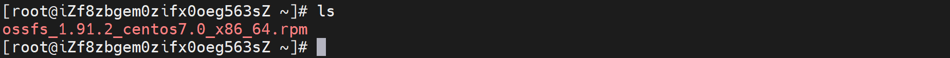 [root@iZf8zbgem0zifx0oeg563sZ ~]# yum install -y ossfs_1.91.2_centos7.0_x86_64.rpm