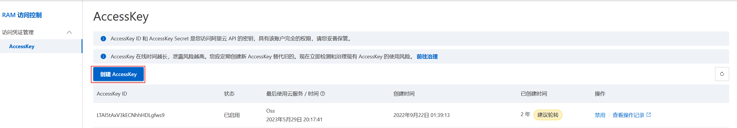 AccessKey ID:LTAI5t7BYsq2yg7xLDKNXtaL