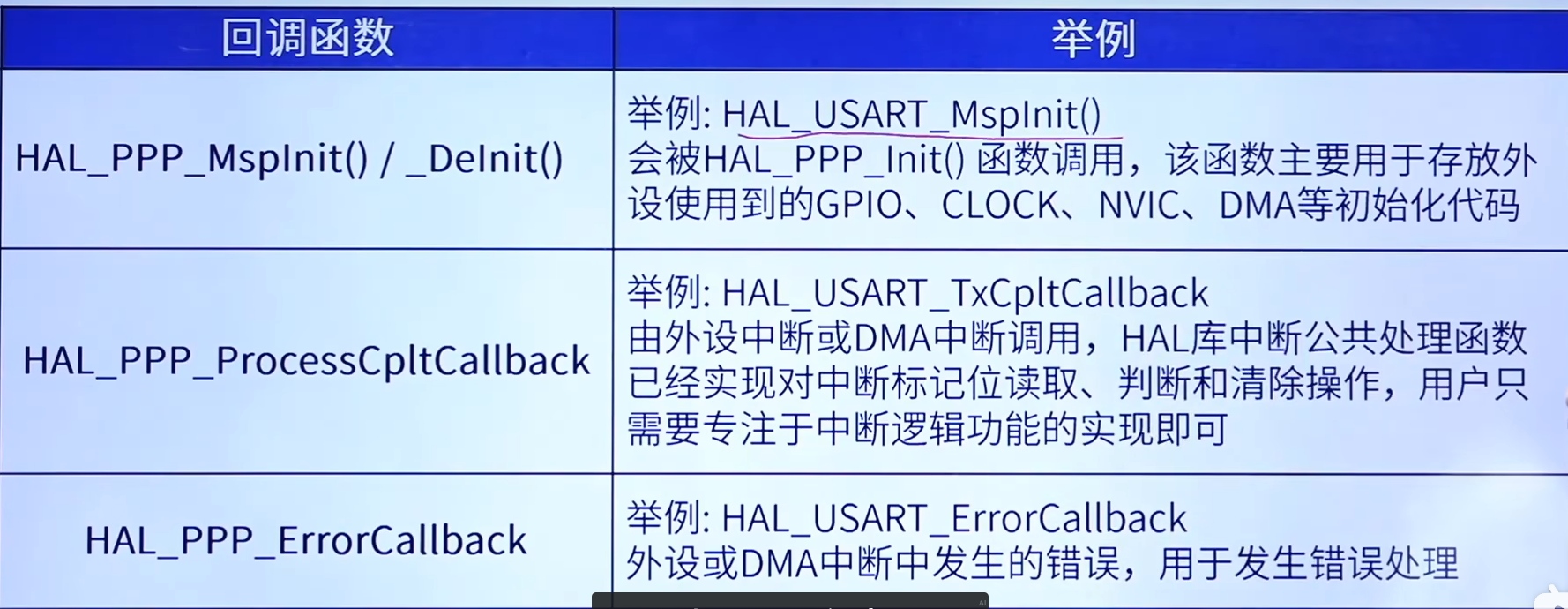 接下来的是HAL库的重点也是标准库有所不同的地方就是HAL库的回调函数