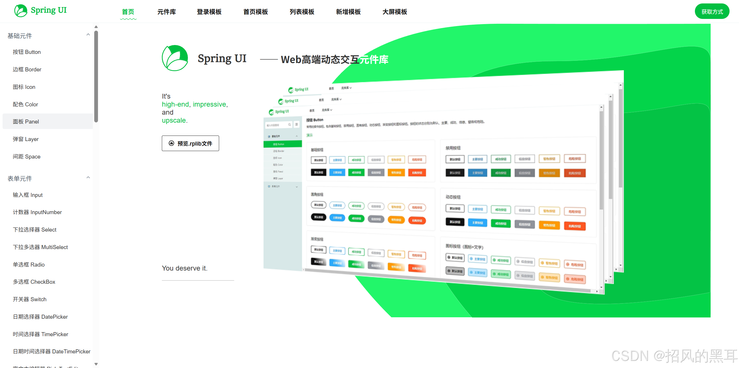 SpringUI的基础元件库超越了一般"按钮和图标"的概念。它提供: