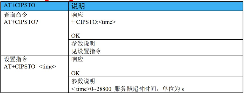 - 9)、AT+CIPSTO:设置服务器超时时间