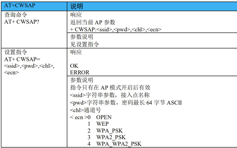 - 5)、AT+CWSAP:设置 AP 模式下的参数